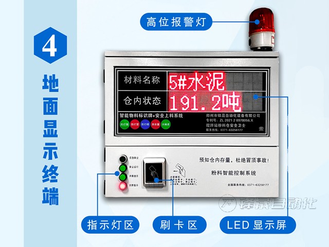 2.地面显示终端通常安装在粉料仓附近的显眼位置,方便操作人员随时查看。它的FED屏上也会数字化显示物料的信息。
